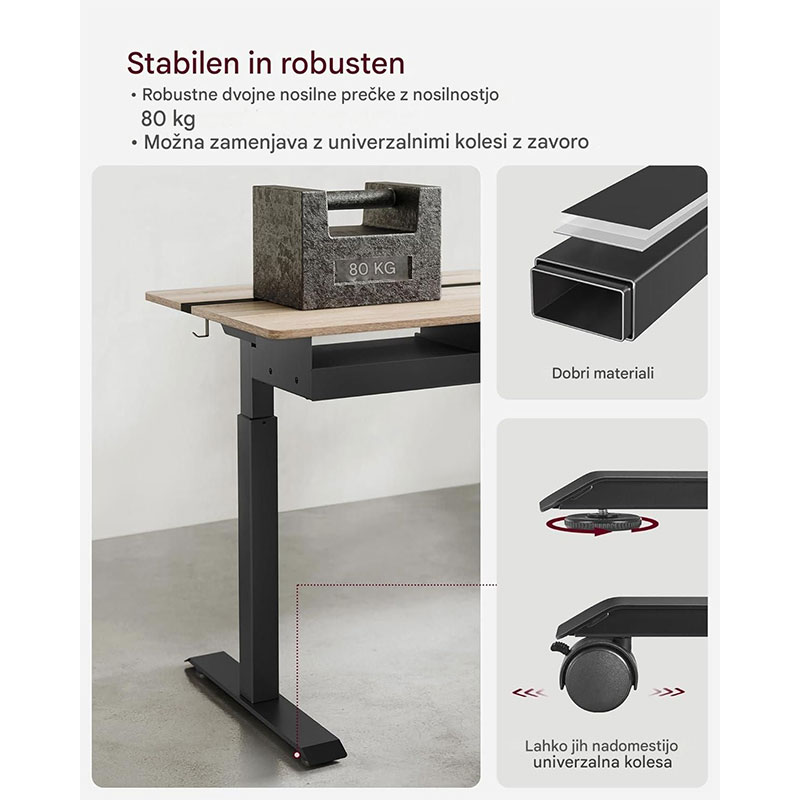 Električni stol hrast UVI Desk Nature, crno - smeđi