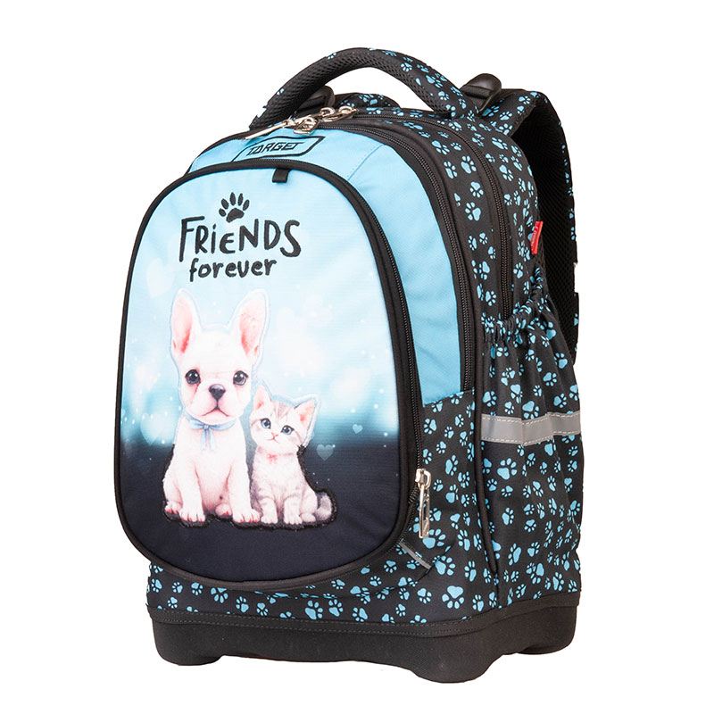 Ergonomski školski ruksak nezamjenjiv je za sve koji pohađaju niže razrede osnovne škole. Opremljen je višeslojnim čvrstim dnom, ergonomski dizajniranim leđima i prozračnim materijalom, koji smanjuje znojenje, pružajući tako veću udobnost i zadovoljstvo. Naramenice su vrlo izdržljive i mogu se podesiti po želji. Sigurnost djece osiguravaju ugrađeni reflektori koji čine dijete vidljivim sa bilo koje strane noću. Izrađena je od kvalitetnog, vrlo izdržljivog 600D poliestera. S prednjim pretincem koji se može ukloniti, torba može biti ponovo popularna nakon nekog vremena.