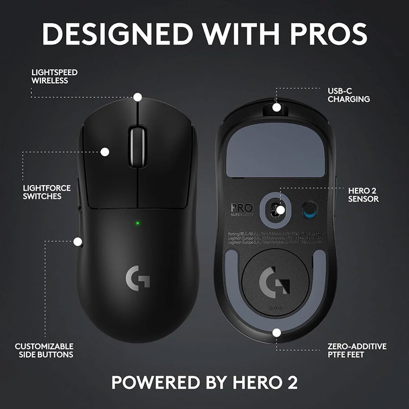 Opremljen je naprednim HERO 2 senzorom koji omogućuje iznimno precizno praćenje s rezolucijom do 44.000 DPI, izuzetnom brzinom (> 888 IPS) i ubrzanjem većim od 88 G bez filtriranja ili zaglađivanja, što osigurava točno kretanje i brzu reakciju čak i u najzahtjevnijim igrama. Koristi LIGHTFORCE hibridne prekidače za brže i osjetljivije klikove, ima 5 tipki, izdržljive PTFE nožice za glatko klizanje te do približno 95 sati autonomije baterije pri neprekidnom korištenju. Predstavlja izvrstan izbor za strastvene igrače, ali i za sve koji traže vrhunsko bežično rješenje s preciznim praćenjem, laganim dizajnom i profesionalnim performansama.