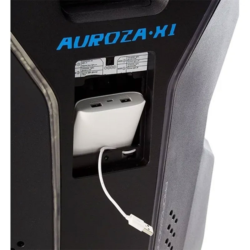 isključivanje osvjetljenja kada je stol zauzet i pulsiranje plave kada je slobodan. Osvjetljenje napaja priložena powerbank baterija kapaciteta 20.000 mAh.