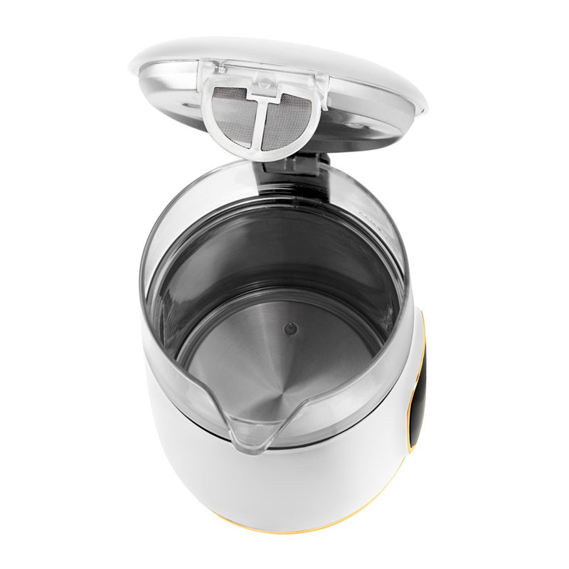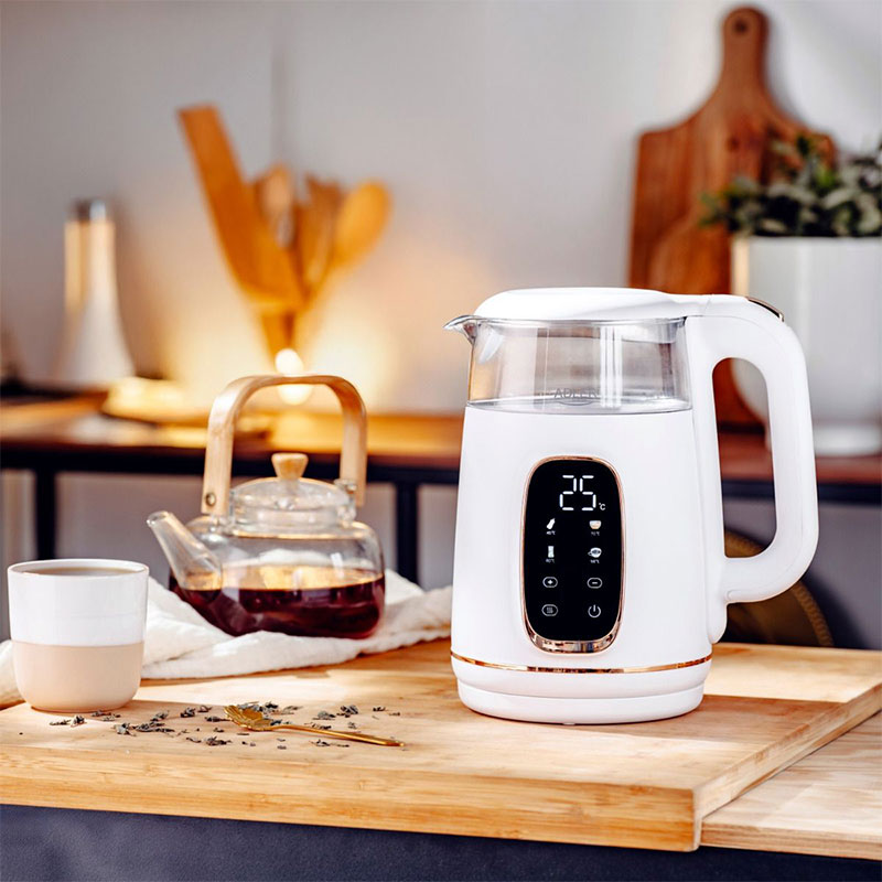 Kuhalo je opremljeno LED zaslonom u boji koji prikazuje trenutnu temperaturu. Zahvaljujući ravnom grijaču od nehrđajućeg čelika voda se brzo i ravnomjerno zagrijava, dok