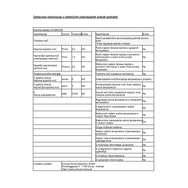 : ventilator, 1000 W i 2000 W. Grijač sadrži sobni termostat koji vam omogućuje postavljanje željene temperature, kao i funkciju tjednog programiranja, detekciju otvorenog prozora i 12-satni timer, koji omogućuje automatsku kontrolu grijanja prema rasporedu.