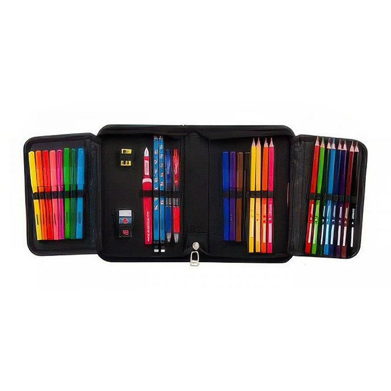 12 bojica, 12 flomastera, 2 kemijske olovke, 2 grafitne olovke, 1 gumicu i ravnalo