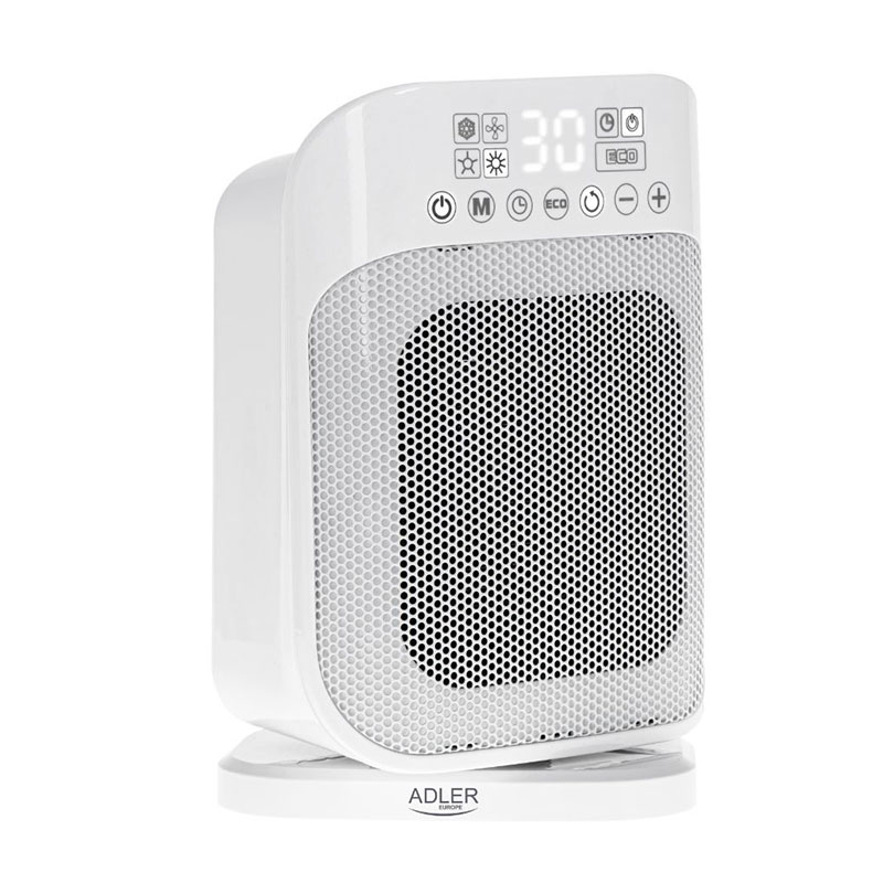 Učinkovito zagrijte svoj prostor keramičkim grijačem koji kombinira elegantan izgled i praktičnu funkcionalnost. Omogućuje vam postavljanje temperature