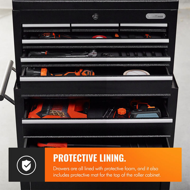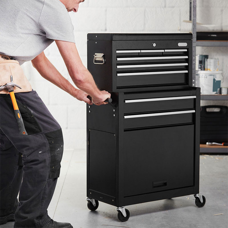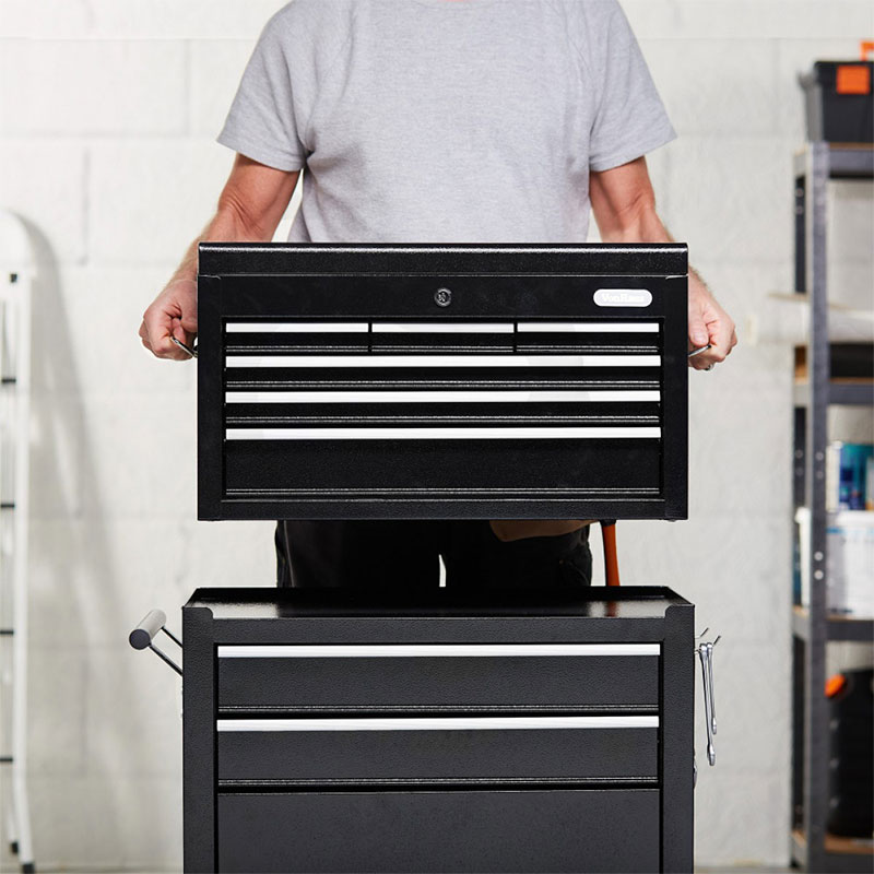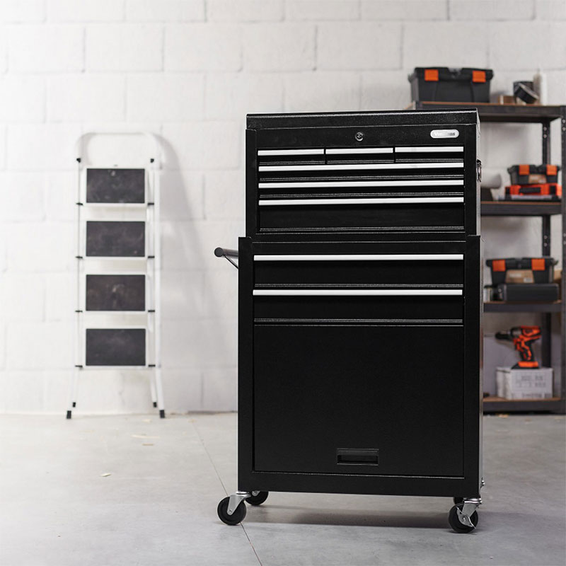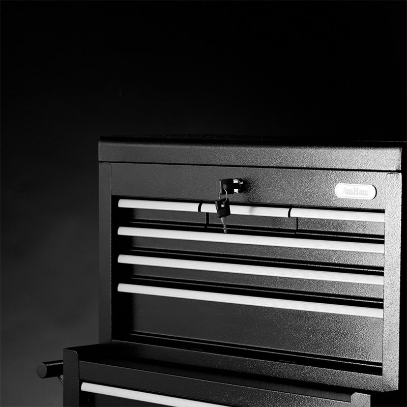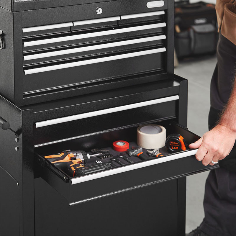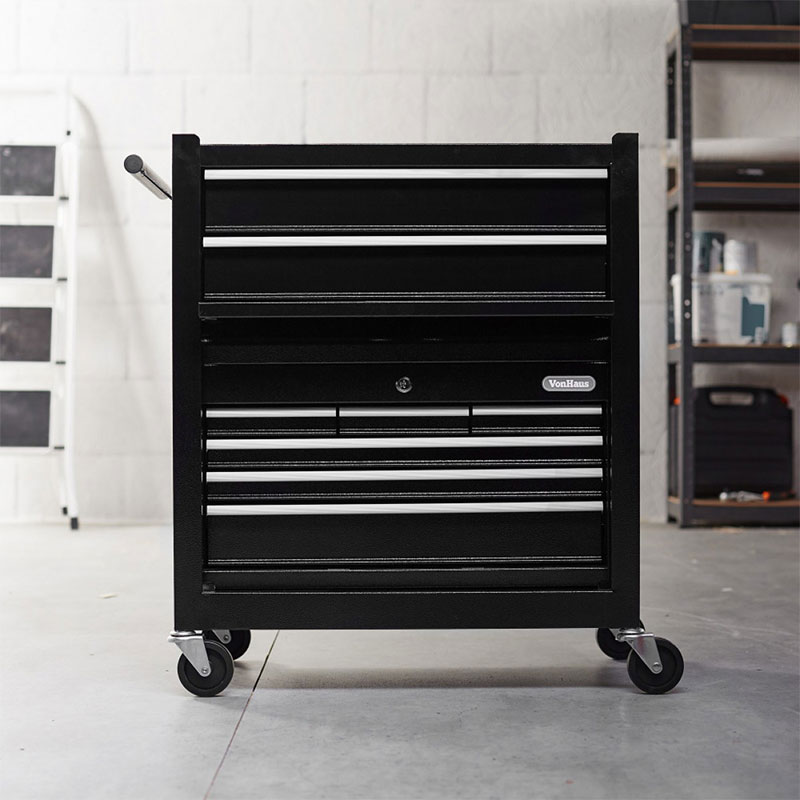 Savršeno rješenje za sve majstore koji žele da im alat bude uvijek organiziran, zaštićen i pri ruci. Sa svojom robusnom čeličnom konstrukcijom i elegantnim crnim završetkom, prikladan je za svaku garažu, radionicu, spremište ili kućni radni kutak. Pruža mnogo prostora za pohranu, uključujući