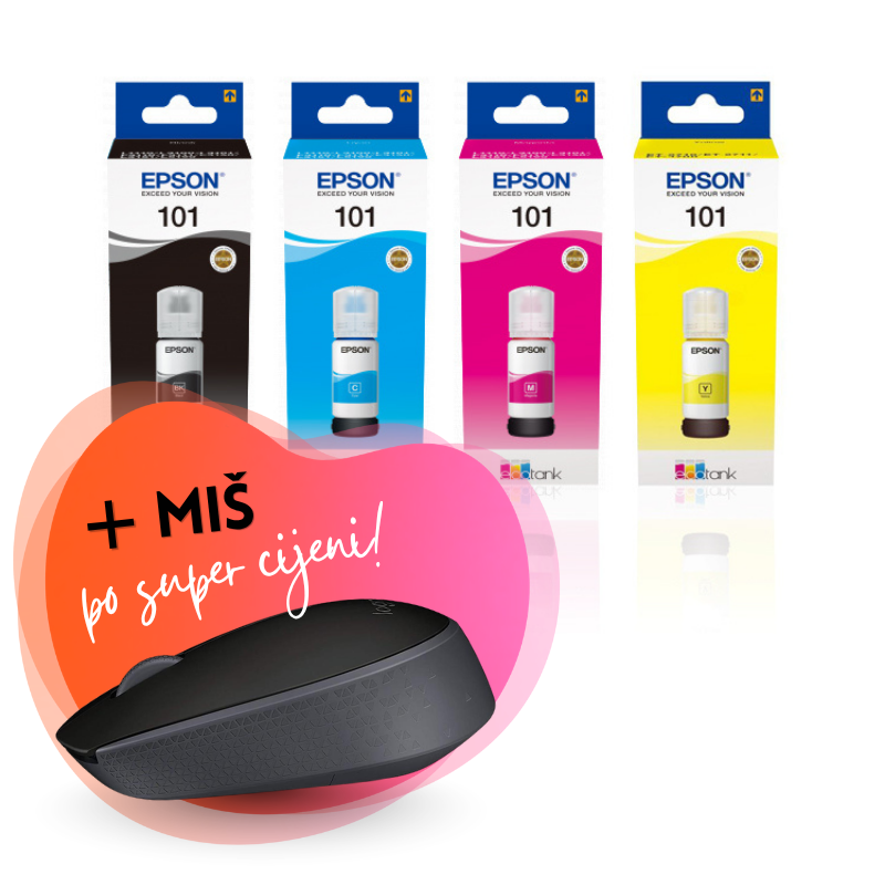 Komplet bočica Epson 101 (BK/C/M/Y), original + bežični miš po SUPER cijeni