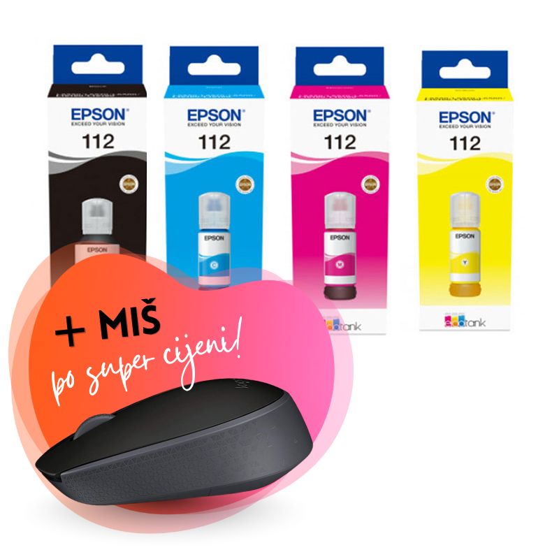 Komplet bočica Epson 112 (BK/C/M/Y), original + bežični miš po SUPER cijeni