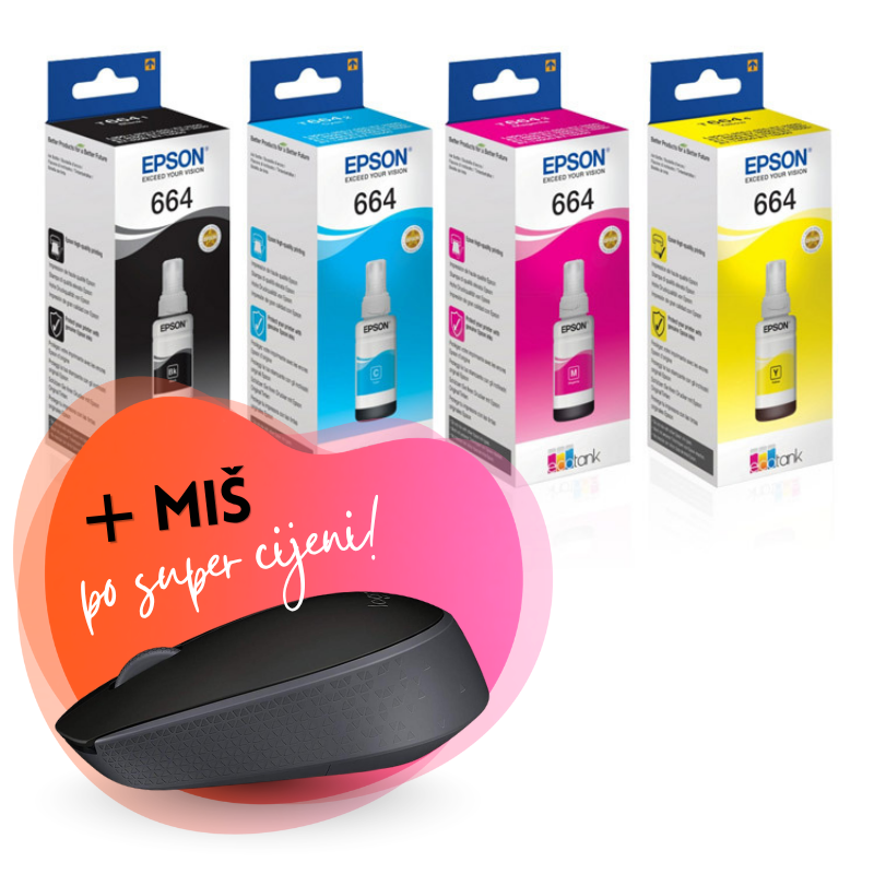 Komplet bočica Epson T664 (BK/C/M/Y), original + bežični miš po SUPER cijeni