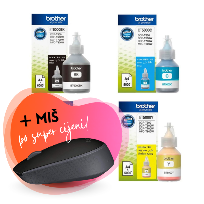 Komplet tinta Brother BT-6000 BK + BT-5000 (C/M/Y), original + bežični miš po SUPER cijeni