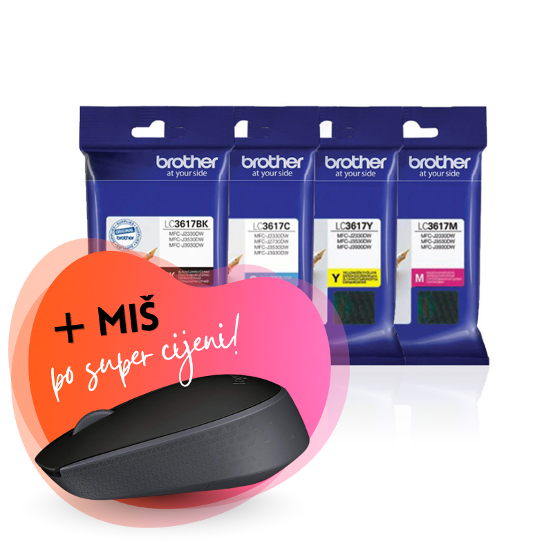 Komplet tinta Brother LC3617 (BK/C/M/Y), original + bežični miš po SUPER cijeni