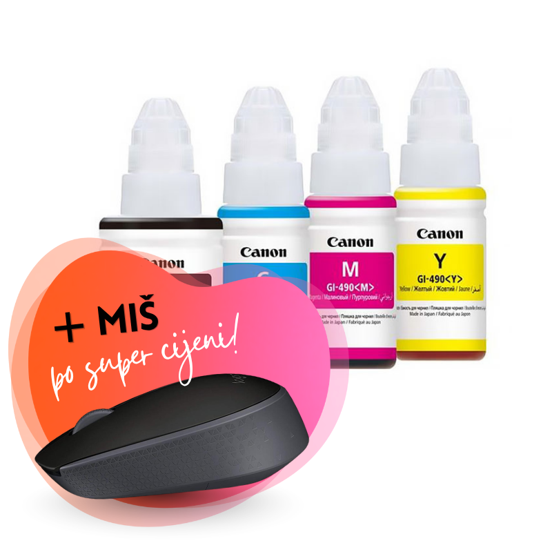 Komplet tinta Canon GI-490 (BK/C/M/Y), original + bežični miš po SUPER cijeni