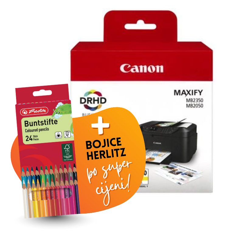 Komplet uključuje: originalne tinte Canon PGI-1500XL (BK/C/M/Y) i Bojice Herlitz, 24 komada.