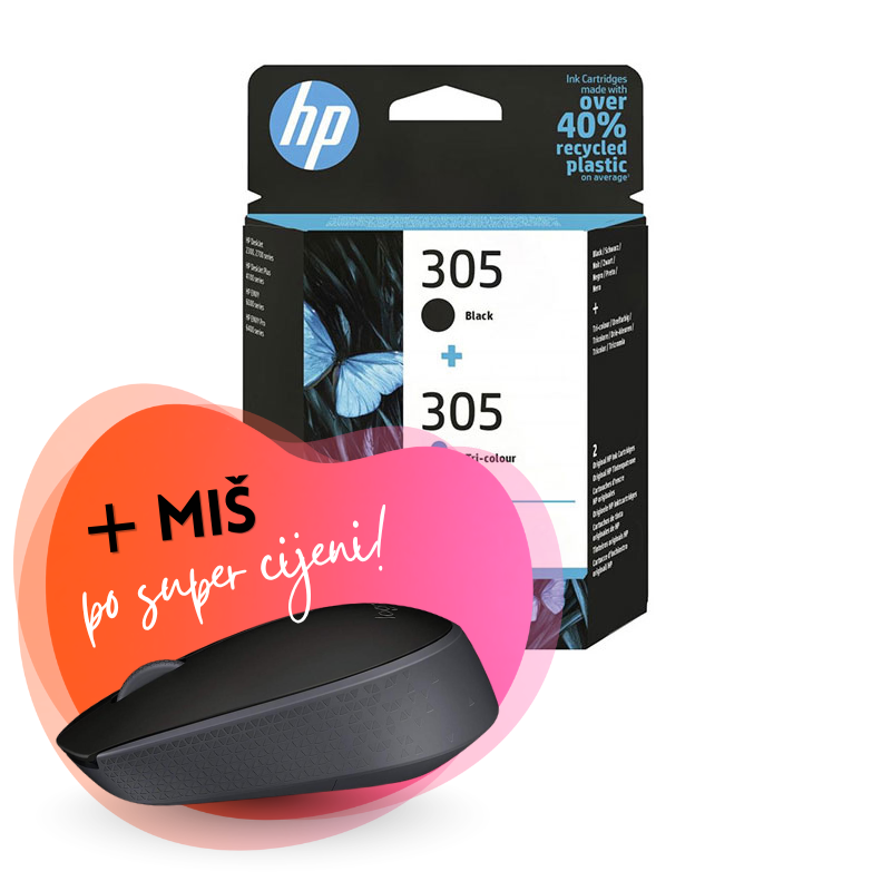 Komplet tinta HP 6ZD17AE (nr.305 BK + nr.305 CMY), dvostruko pakiranje, original + bežični miš po SUPER cijeni