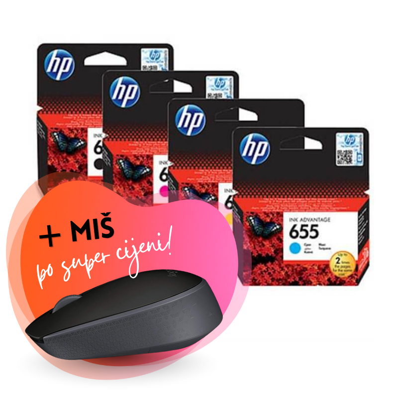 Komplet tinta HP nr.655 (BK/C/M/Y), original + bežični miš po SUPER cijeni