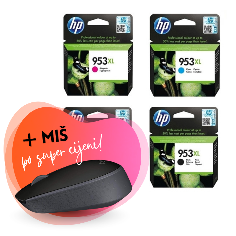 Komplet tinta HP nr.953XL (BK/C/M/Y), original + bežični miš po SUPER cijeni