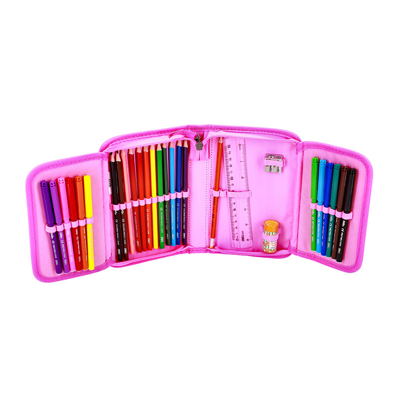 U kompletu se nalazi: ABC123 torba, vrećica za papuče, prazna pernica i puna 28-dijelna jednokrilna pernica.