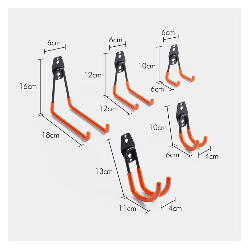 Iskoristite prostor uz zidne kuke za alat, koje su savršene za uporabu u radionici, garaži ili skladištu. U kompletu dolazi