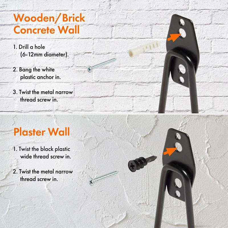 , uključujući drvo, ciglu i gipsane ploče. Kuke su izrađene od