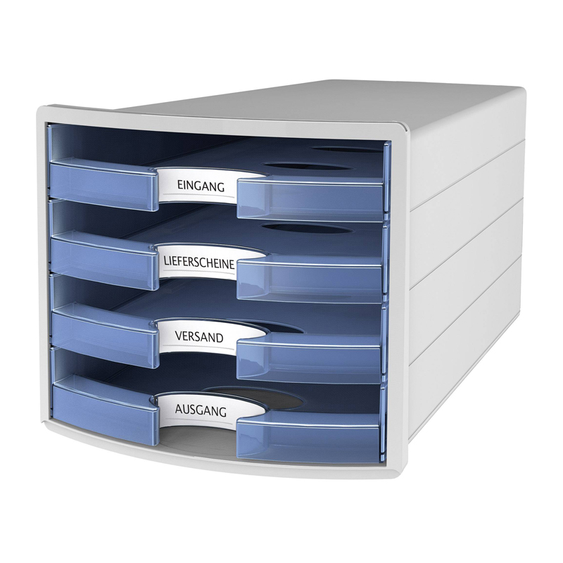 Ladičar Han Impuls, otvoren, prozirno plav sa sivim kućištem