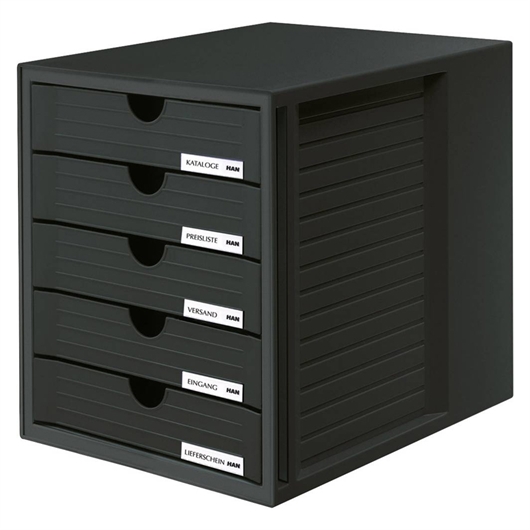 Standardni ladičar za svaki ured sastoji se od 5 ladica, u koje možete pohraniti dokumente veličine C4. Ladičar je je primjeren za uredske ormare jer je njegova visina jednaka visini registratora. Ladičar ima priložene naljepnice za označavanje ladica.