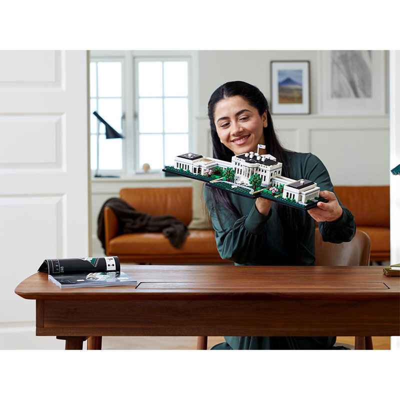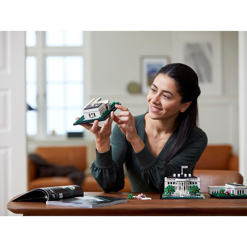 Uživajte u kreativnom setu za odrasle koji vam omogućuje da izgradite jedan od najprepoznatljivijih simbola Sjedinjenih Država. Ovaj pomno izrađen model sadrži neoklasične stupove predsjedničke rezidencije, kolonade koje povezuju istočno i zapadno krilo te okolne vrtove s fontanom. Model Bijele kuće podijeljen je u tri dijela radi boljeg pogleda na arhitektonske značajke, a uključuje LEGO kockicu s natpisom Bijela kuća kako bi se upotpunio elegantan prikaz.