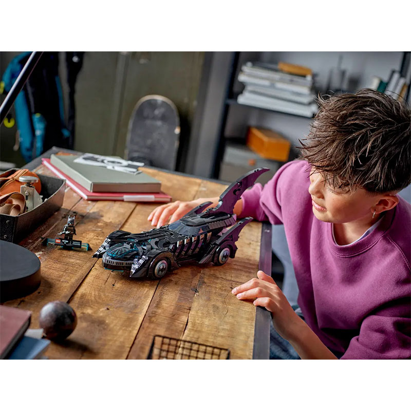 Otkrijte legendarni svijet superheroja s ovim kolekcionarskim setom za sve ljubitelje DC Super Heroes i LEGO kockica. Ovaj impresivni set od 909 dijelova nudi nevjerojatno iskustvo sastavljanja, igranja i rastavljanja. Model vjerno rekreira kultni Batmobile iz filma Batman Forever i ima oblikovano vjetrobransko staklo, rotirajuće kotače, autentične detalje i kokpit koji se otvara s detaljnom unutrašnjošću. Uz vozilo, uključena je i