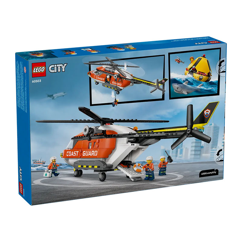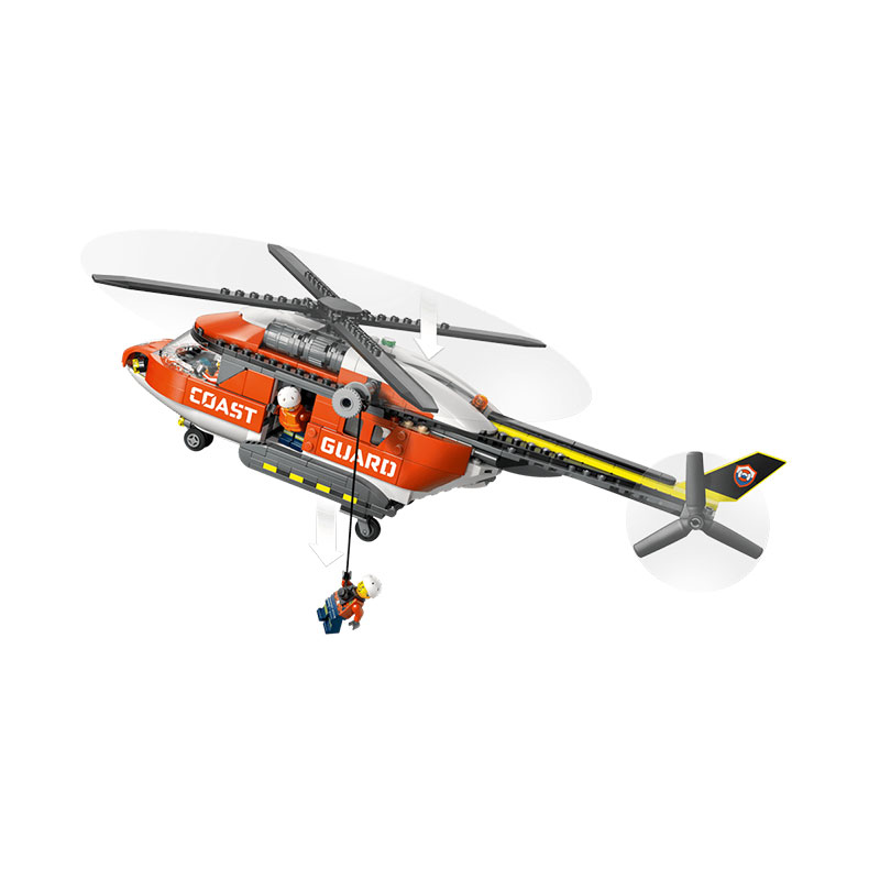 , uključujući rotirajuće rotore, klizna bočna vrata, sklopivu stražnju rampu te precizno izrađenu kabinu i trup. Djeca mogu spustiti člana posade vitlom helikoptera, istražiti spasilačku kapsulu koja se otvara za pristup unutrašnjosti te upravljati raznim akcijama s pilotom, civilistom, dva člana Obalne straže pa čak i morskim psom.