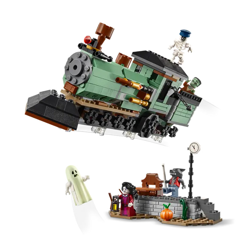 Set za slaganje koji djeci omogućuje da zaigraju zastrašujuće priče i stvore vlastite strašne prizore. Dvoetažna kuća puna je zanimljivih elemenata: otvorena ulazna vrata, groblje, odvojivo strašno drvo, orgulje, skriveni duh koji se pojavljuje okretanjem kotača, te stražnja strana koja se otvara za dodatne mogućnosti igre. Djeca od istih kocka mogu