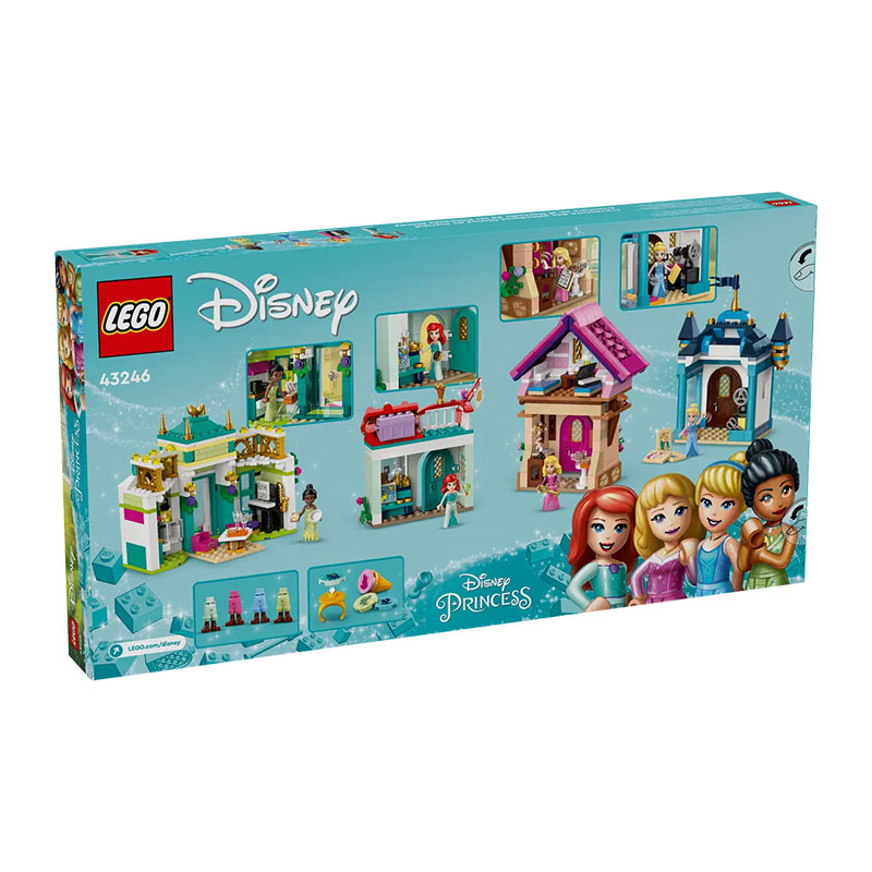 na kojem se sastaju popularne Disneyeve princeze. Uključuje minifigure Ariel, Tiane i Moane, zajedno s raznim štandovima na kojima mogu prodavati voće, povrće i druge stvari. S interaktivnim elementima kao što su rotirajući štandovi i dostava hrane, set potiče kreativnu igru.
