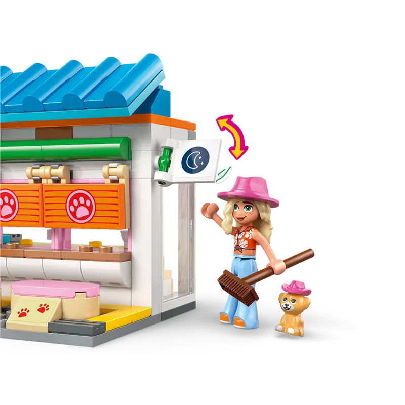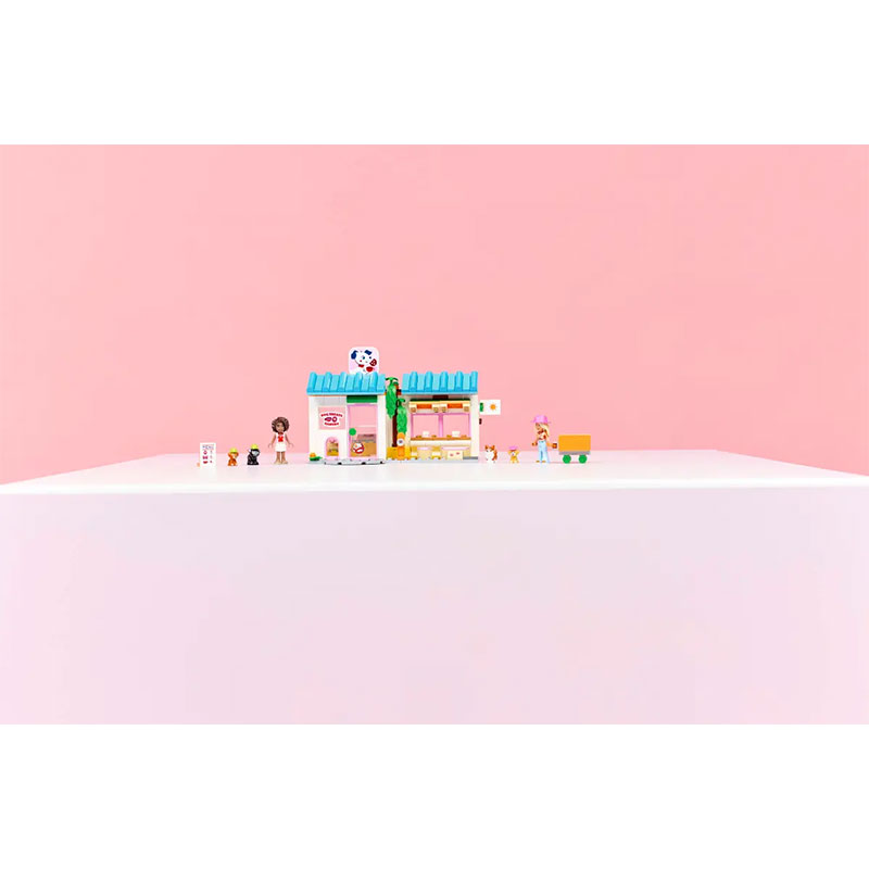 Simpatična pekarnica puna zabavnih detalja i dodataka koji će oduševiti sve ljubitelje životinja. U unutrašnjosti se nalaze pećnica, aparat za kavu, hladnjak i kutak za sjedenje, a tu su i brojni elementi prilagođeni životinjama, poput zabavnih natpisa, transportera za kućne ljubimce, posebnih vrata za pse i rampe do pulta, tako da i psi mogu sudjelovati u poslu. Set uključuje