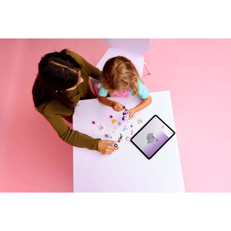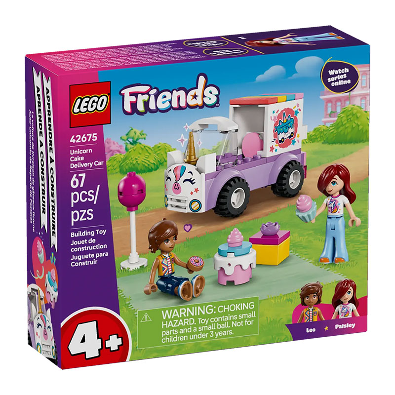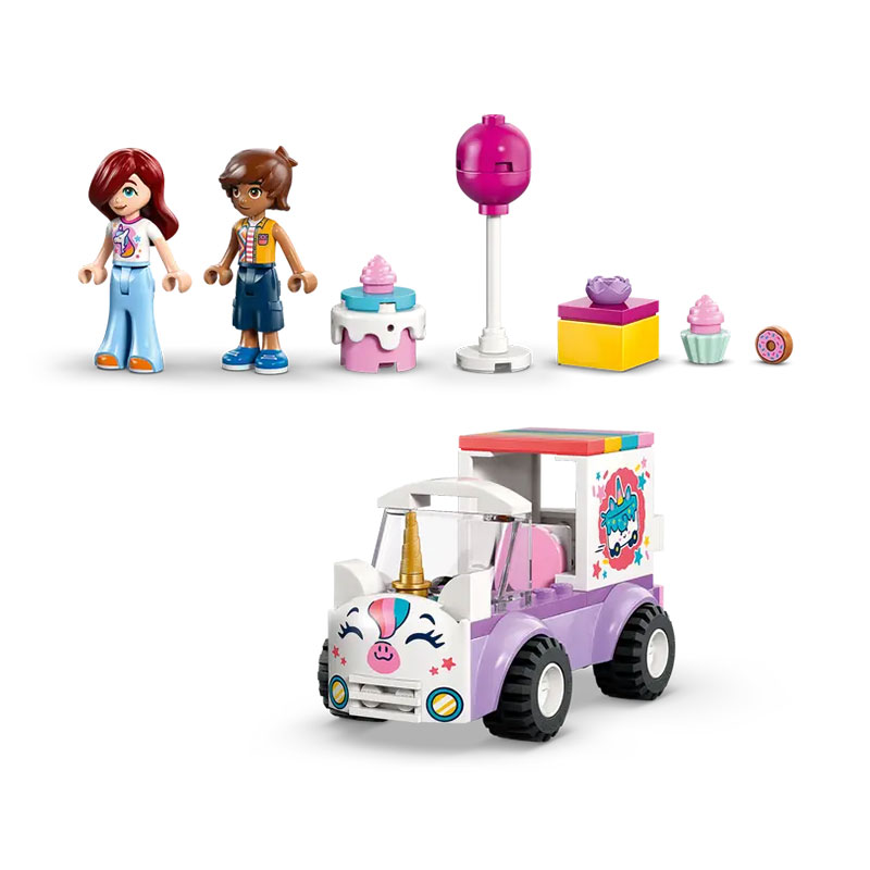 Samorogov auto za dostavu torti omogućuje djeci da slože simpatičan automobil s motivom samoroga i krenu u sate maštovite igre. Set uključuje