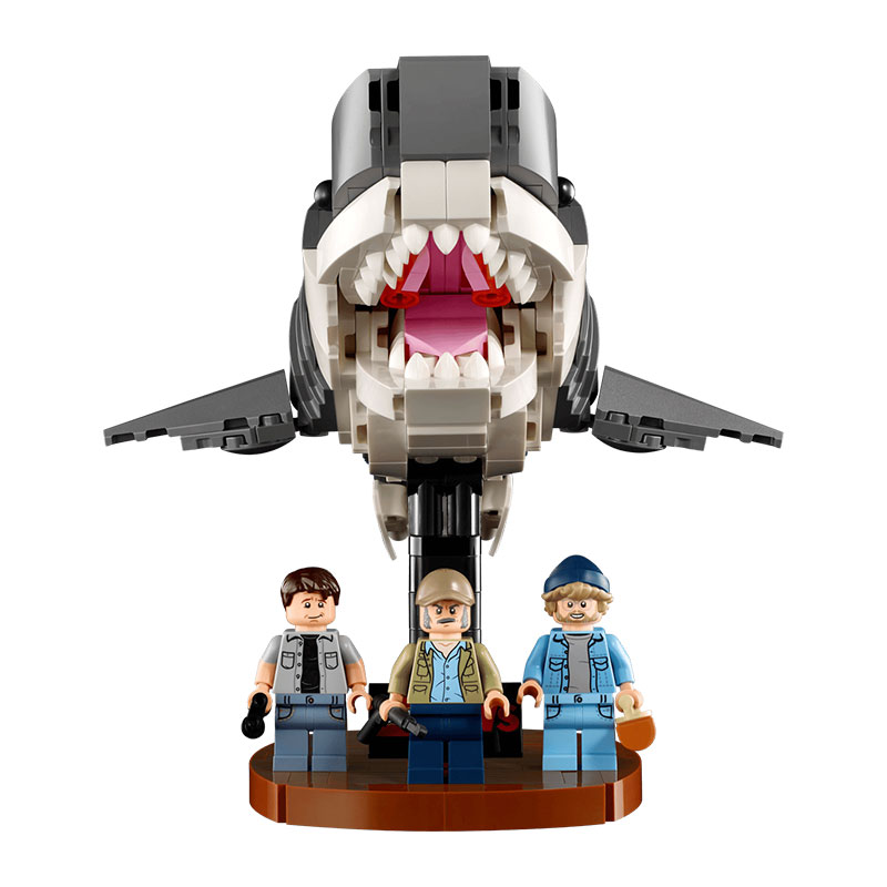 Zabavan set za sve obožavatelje filma Ralje. Uključuje model broda Orca s detaljnom kabinom s odvojivim krovom, podesivim stupom i prslucima te mnogim ikonskim dodacima. Model se može postaviti u bazen od LEGO kockica gdje LEGO morski pas napada brod. Tiskana pločica s Brodyjevom poznatom rečenicom ("Trebat će ti veći brod") može se pričvrstiti na bazu, stvarajući nostalgičan i razigran izložbeni komad.