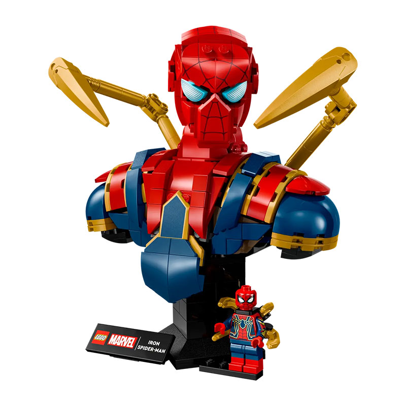 . Set uključuje 379 kockica i omogućuje stvaranje ikonične figure Spider-Mana u Iron Man oklopu s dva pokretna mehanička ruka i pokretnom glavom. U kompletu su dvije zamjenjive podloge s imenom: jedna s prostorom za odvojivu Iron Spider-Man minifiguru i jedna bez nje.