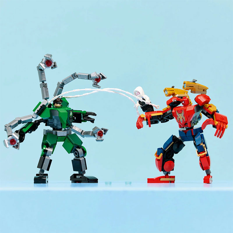 Zabavan građevni set koji donosi epsku akciju s dva potpuno pokretna mecha i mini figuricama Spider-Mana, Ghost-Spidera i Doc Ocka. Oba mecha imaju kabinu koja se otvara i u koju se smješta mini figurica pilota, što omogućuje dinamičnu i uzbudljivu igru.