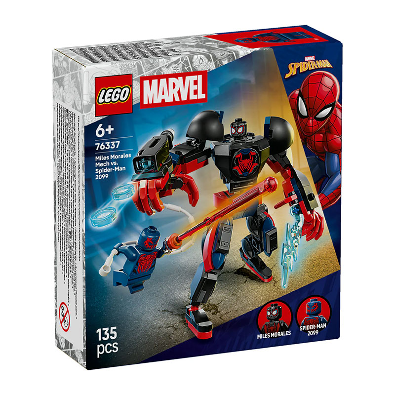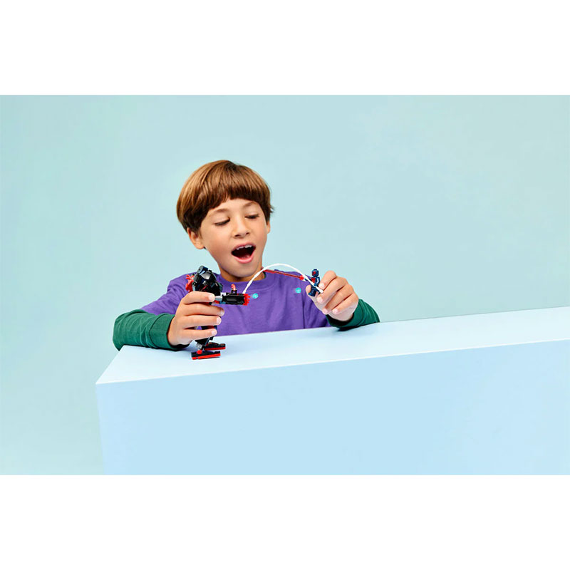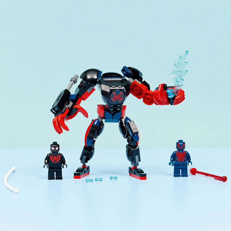 Zabavan građevni set namijenjen svim obožavateljima superheroja. Uključuje mini figurice Milesa Moralesa i Spider-Mana 2099 te veliki, potpuno pokretni mech koji omogućuje dinamičnu i kreativnu igru uloga.