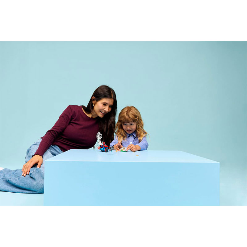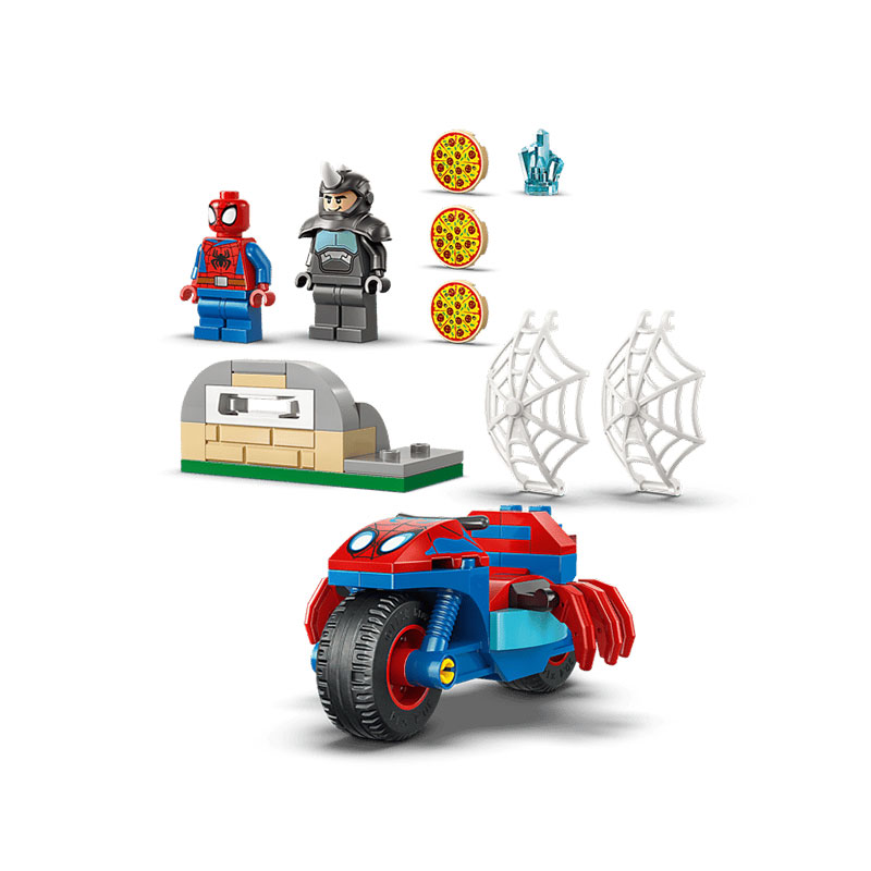 Zabavan komplet uključuje mini figure Spider-Mana i Rhina te Spider-motor.
