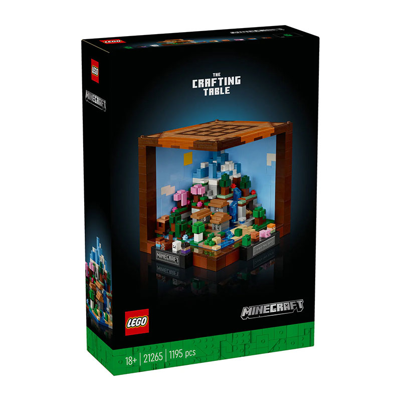 , uključujući stol za izradu i druge bitne elemente za preživljavanje u svijetu Minecrafta. Set također uključuje ikonske figure kao što su