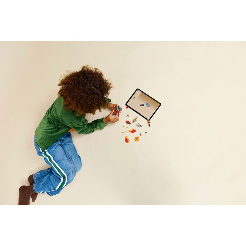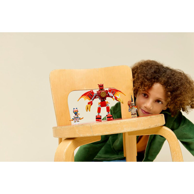 Zabavan građevni set namijenjen svim obožavateljima TV-serije NINJAGO Dragons Rising. Set uključuje zmaj mech s podesivim nogama, velikim krilima, kandžastim rukama i gornjim dijelom koji se okreće za 360 stupnjeva, te pilotsku kabinu za mini figuricu.