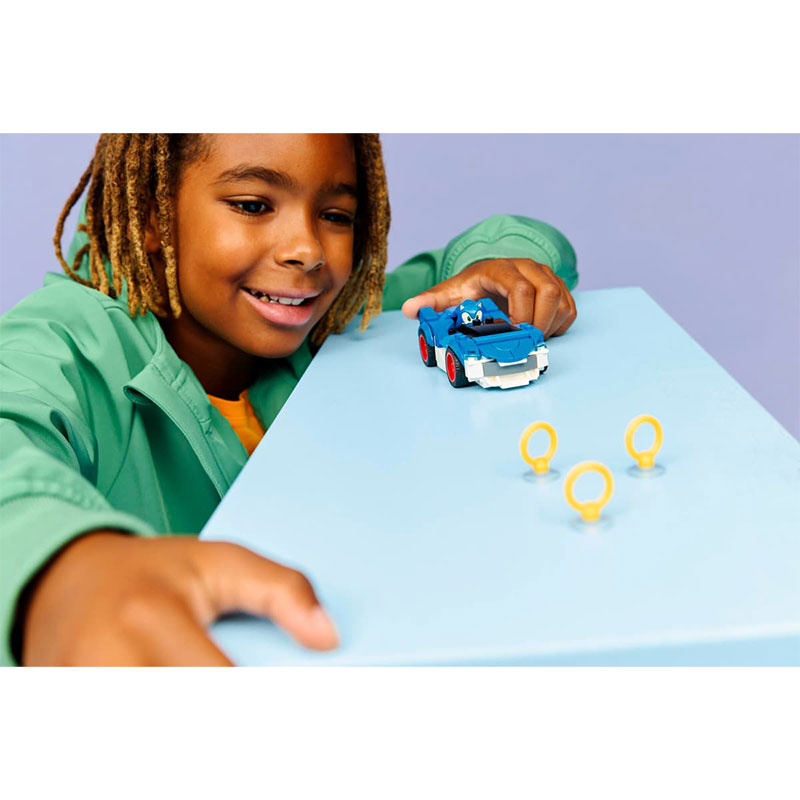 Zabavan građevni set koji potiče maštovitu igru i razvoj kreativnih vještina. Set je inspiriran video igrom Sonic Racing: CrossWorlds i uključuje minifiguricu Sonica s simpatičnim nestašnim izrazom, plavo-bijelo vozilo s crvenim širokim obručima te poklopcem motora koji se otvara i skriva tajni Chaos Emerald.