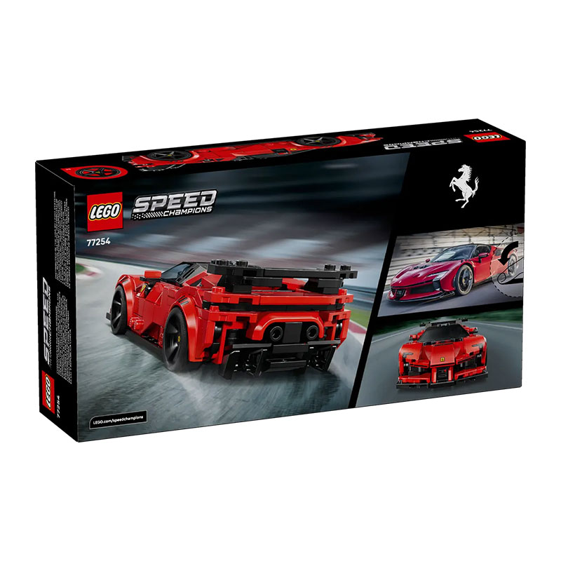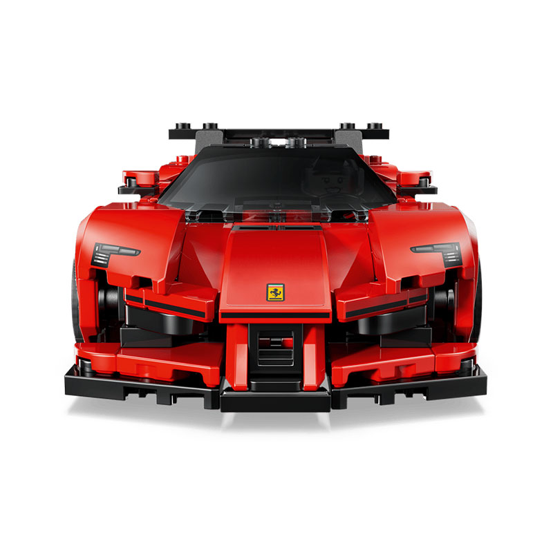 Prekrasan komplet koji donosi uzbudljivu gradnju trkaćeg automobila. Model prikazuje detalje najmoćnijeg serijskog automobila talijanskog proizvođača. Set uključuje karakterističan prednji dio kabine, stražnje krilo, visoke ispušne cijevi i kotače s Ferrarijevim grbom. Uključen je i mini vozač u Ferrarijevoj opremi i kacigi, kojeg možete postaviti u kabinu za igru ili izlaganje.