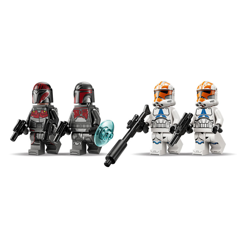 Zabavan građevni set koji omogućuje rekreiranje epskih scena iz bitke za Mandalore iz serije Star Wars. Uključuje četiri mini figurice: dva Mandalorijanska Super Commandosa i dva 332. Clone Troopera Ahsoke, te Mandalorijan speeder, barikadu Clone Troopera i brojne dodatke za akcijsku igru.