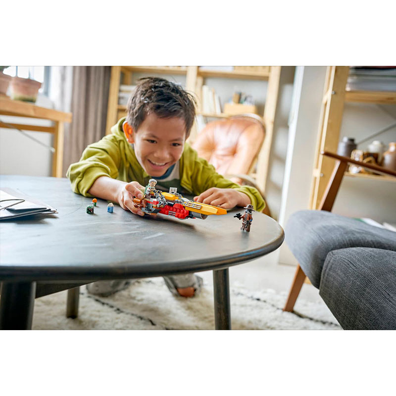 Zabavan građevni set koji omogućuje ponavljanje uzbudljivih scena iz serije The Mandalorian. Uključuje detaljno dizajniran speeder kojim upravlja Cobb Vanth. Model sadrži vozačko sjedalo za mini figuricu, nosač za pištolj te skriveni pretinac za pohranu ikoničnih dodataka, uključujući Boba Fettovu kacigu i tetrapak s bantha mlijekom. Set također uključuje mini figuricu Cad Banea s dva blastera, dok Cobb Vanth ima na raspolaganju jetpack za akciju u zraku.