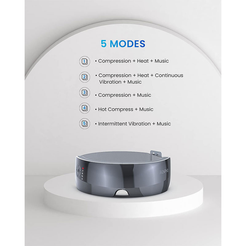 (40 °C ili 42 °C), dok intenzitet kompresije prilagodite vlastitim potrebama. Upravljanje je jednostavno jednim gumbom. Različiti načini kombiniraju grijanje, zračnu kompresiju, vibracije i glazbu za smanjenje suhoće očiju, oteklina, napetosti i migrena.