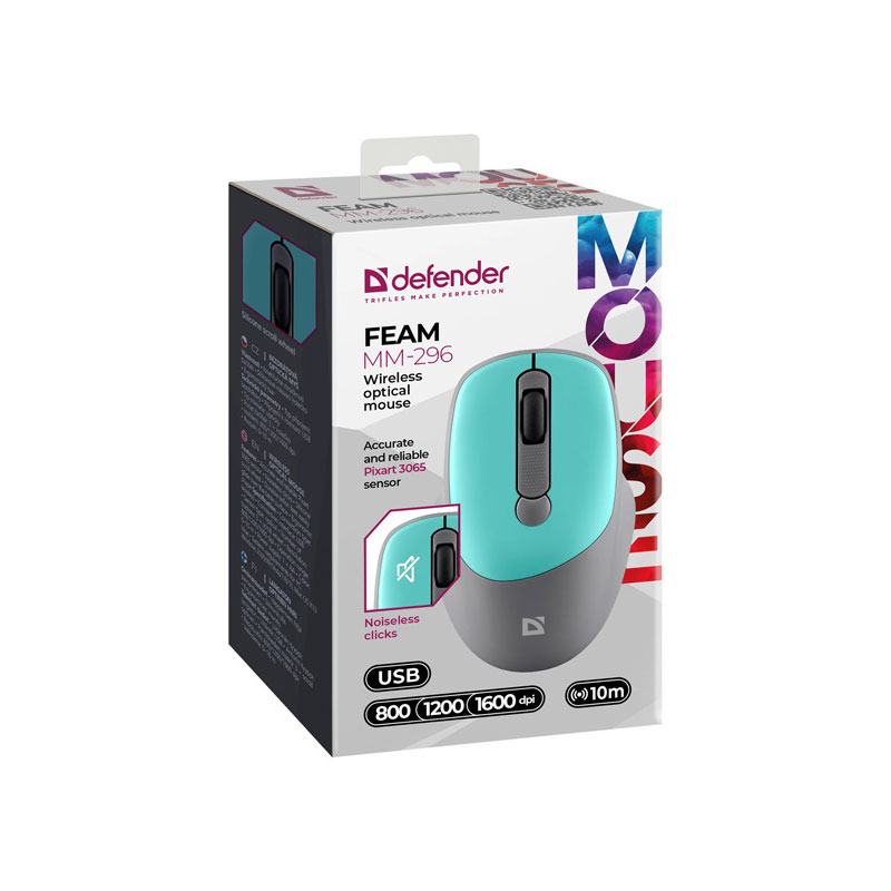 Miš Defender FEAM MM-296, bežični, tirkizni