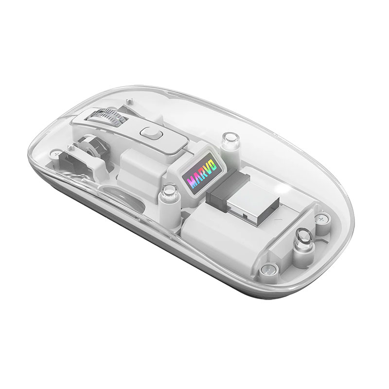Elegantni i svestrani bežični miš, dizajniran za rad i slobodno vrijeme. Kombinira moderan dizajn, prilagodljive funkcije i jednostavno korištenje, što ga čini idealnim za svakodnevnu upotrebu kod kuće, u uredu ili na putu. Omogućuje dva načina povezivanja (2.4G bežično i Bluetooth), što osigurava stabilnu i fleksibilnu povezivost s različitim uređajima. Uz podesivu osjetljivost do 1600 DPI, lako možete prilagoditi preciznost – od detaljnog rada do brzog pregledavanja. Poseban vizualni naglasak daje 7-bojno RGB osvjetljenje, koje pruža personalizirano i dinamično korisničko iskustvo. Ugrađena punjiva baterija omogućuje dugotrajno korištenje, dok lagan i kompaktan dizajn osigurava jednostavno prenošenje.