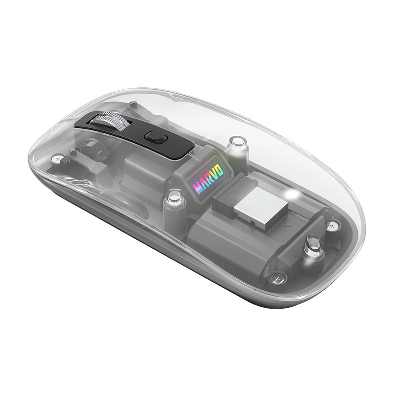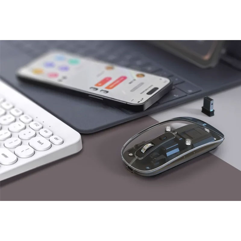 Elegantni i svestrani bežični miš, dizajniran za rad i slobodno vrijeme. Kombinira moderan dizajn, prilagodljive funkcije i jednostavno korištenje, što ga čini idealnim za svakodnevnu upotrebu kod kuće, u uredu ili na putu. Omogućuje dva načina povezivanja (2.4G bežično i Bluetooth), što osigurava stabilnu i fleksibilnu povezivost s različitim uređajima. Uz podesivu osjetljivost do 1600 DPI, lako možete prilagoditi preciznost – od detaljnog rada do brzog pregledavanja. Poseban vizualni naglasak daje 7-bojno RGB osvjetljenje, koje pruža personalizirano i dinamično korisničko iskustvo. Ugrađena punjiva baterija omogućuje dugotrajno korištenje, dok lagan i kompaktan dizajn osigurava jednostavno prenošenje.
