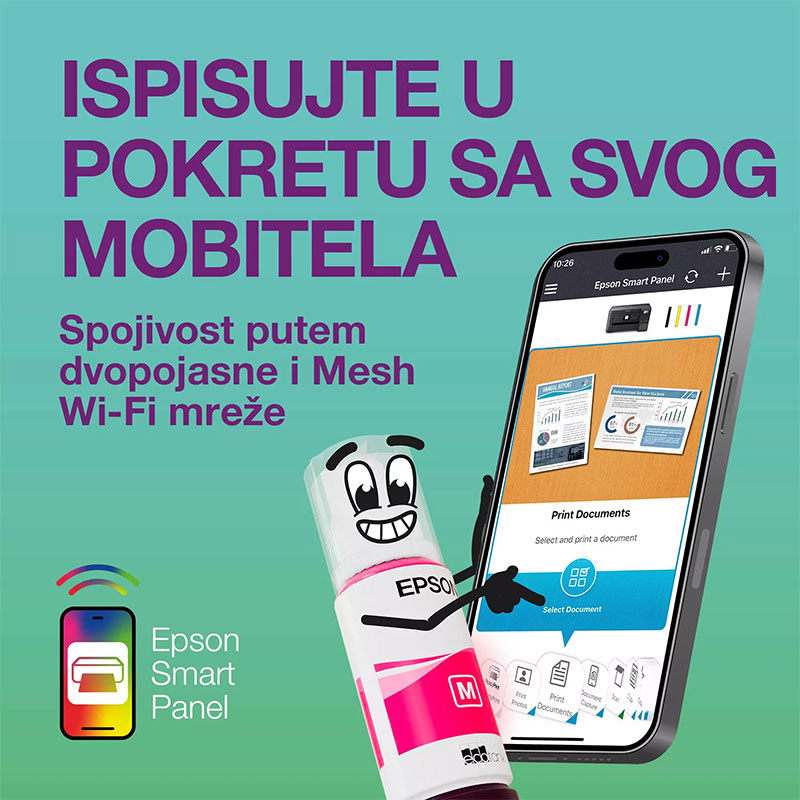 - Aplikacija Epson Smart Panel: bežično postavljanje, praćenje, ispis, skeniranje i još mnogo toga s vašeg pametnog uređaja