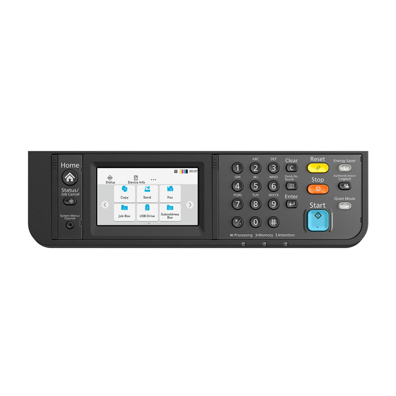 Značajke: Višestruke kopije iz memorije, elektroničko sortiranje, preskakanje praznih stranica, preskakanje redaka, dvostrano kopiranje, Funkcija 2-u-1 i 4-u-1, podijeljeni način rada, automatsko izrezivanje DP-a, kopiranje osobnih iskaznica s podrškom za automatsko izrezivanje, otkrivanje preklopljenih kutova, kontinuirano skeniranje, poništavanje prioriteta, Eco Print (kopiranje) - način rada za uštedu tonera, ispuštanje određene boje, brisanje rubova, automatski odabir papira, ručno i automatsko podešavanje gustoće pozadine, ručno i automatsko smanjenje/povećanje