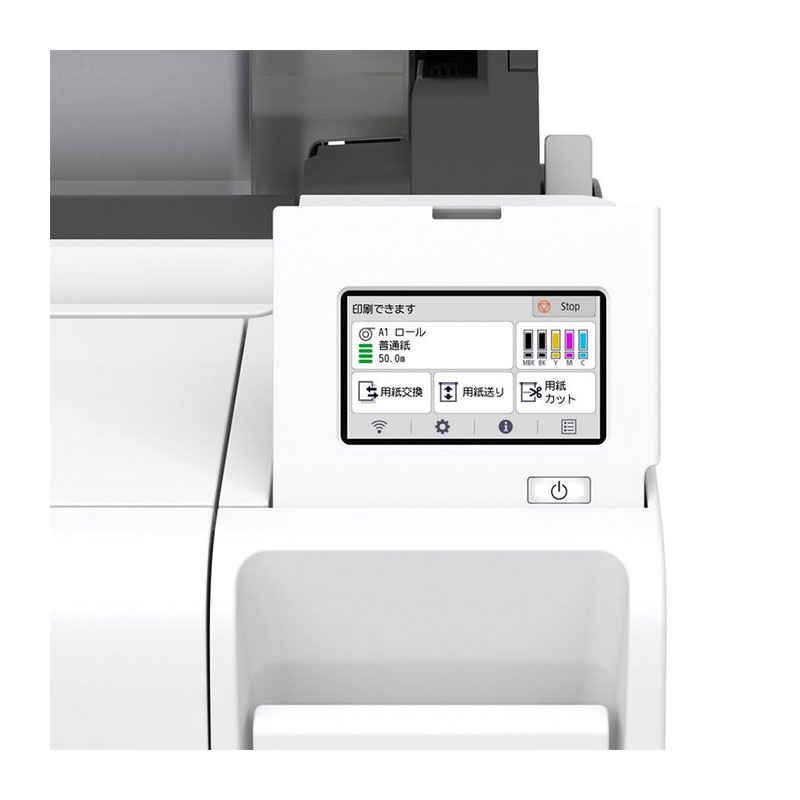Uvlačenje medija i izlaz: Rola papira: jedna rola, umetanje s gornje strane, ispis sprijeda; Rezani listovi: gornje ulaganje, prednji ispis (ručica za zaključavanje ručnog uvlačenja)