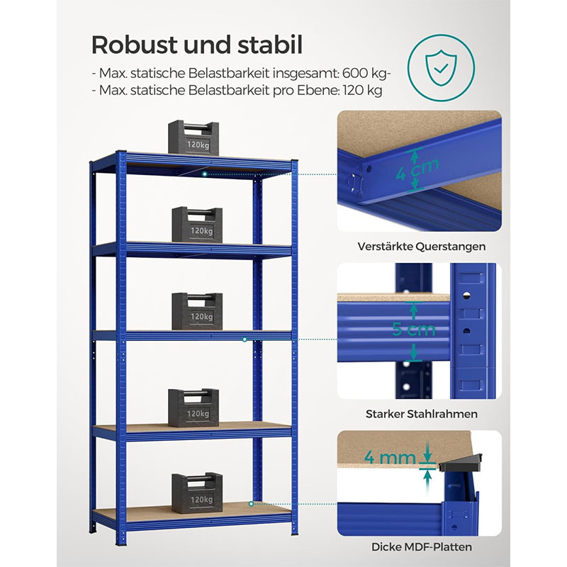 Polica Songmics GLR050Q01, 5 dijelna, (200 x 100 x 50 cm), plava